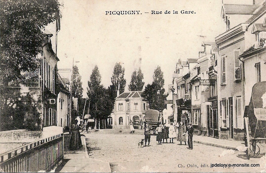 Barrière du pont à g., une maison sur 2 ou 3 est un commerce ! en guise d'automobiles ce sont des voitures à cheval qui sont garées.